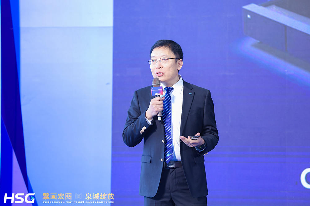 在開業盛典的高潮環節,宏石激光重磅推出了120kW超高功率激光切割機,展示了公司在超高功率激光設備領域的卓越技術實力。宏石激光業務副總裁張洪濤在演講中表示:“今天,我們推出的120kW超高功率激光切割機,是宏石激光在高端激光設備領域的一次重要突破。這款激光切割機配備了專用高功率床身,能夠有效減少高功率切割過程中產生的變形,同時具備超高亮度、更高標準和更高效率?!?